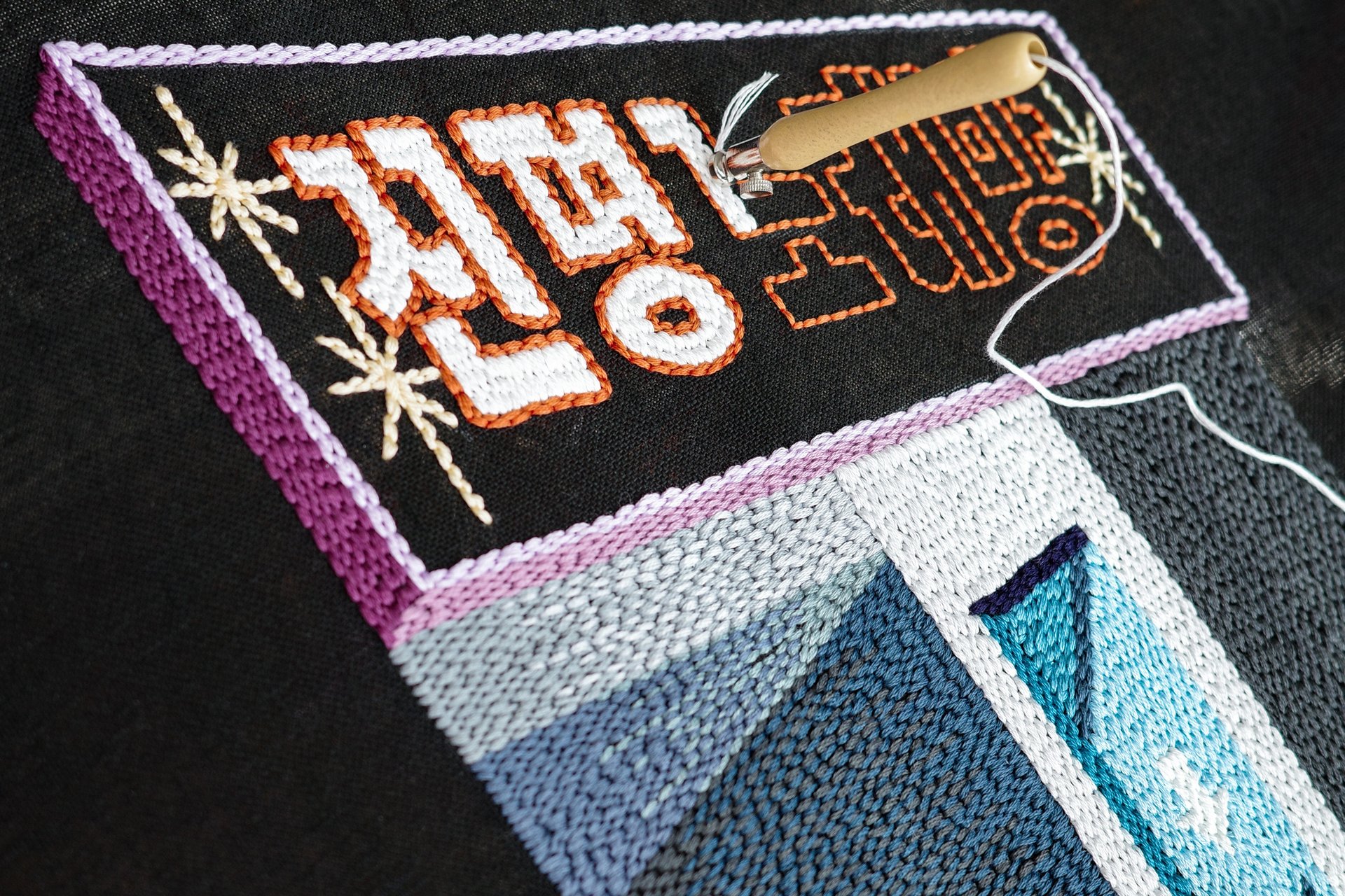 “The work takes subtle cues from Bunka Shishu (文化刺繍), a Japanese punch needle technique often described as painting with thread. It’s historically associated with landscape and still life imagery. I took inspiration from the way light is rendered through blended colours, to celebrate the connection between place and textile.” -Adrienna