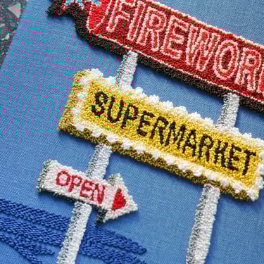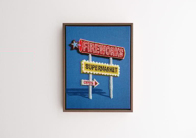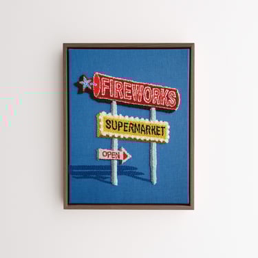 Fireworks Supermarket, 2025cotton, linen, polyester, walnut frame15.5 x 12.5 x 2 in.2250.00 CAD