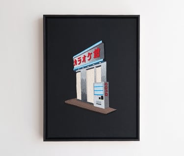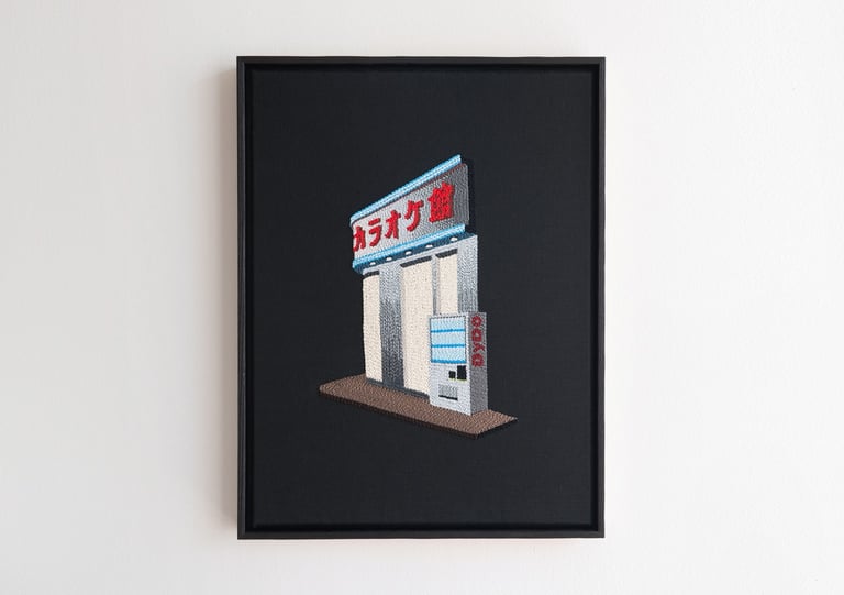 Shibuya Karaoke, 2025cotton, linen, burnt ash frame18 x 24 x 1.5 in.4000.00 CAD